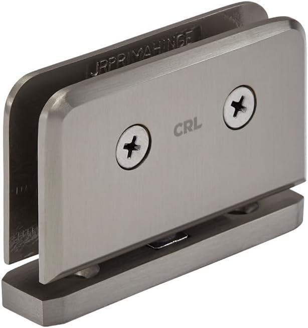 Top and Bottom Mount Design Allows More Glass Exposure Available in Several Beautiful Finishes The CRL Junior Prima Series of professional hinges is able to accommodate 1/4 inch (6 millimeter) thick tempered safety glass. A variety of two styles, Top and Bottom Mount and Glass-to-Glass types, gives design flexibility. Advantages of the Junior and Senior Prima Hinges include the fact that they carry the majority of the weight on the bottom and have the ability to be inset from the wall, enabling clearance for towel bars and other projections. The Glass-to-Glass Top Pivot Hinge is used for doors having fixed transoms. Placed vertically, either style can be used in movable transom installations. These Pivot Hinges are self-centering, with four springs for maximum retention strength. Color: Brushed Nickel Minimum Order: 1 Each Additional Product Information: The Senior Prima Series is adaptable to our Deluxe Header System, and the Junior Prima Series is adaptable to our Junior Header Kit. Optional Pivot Pin: Optional Pivot Pins (Cat. No. JRPIVPIN) designed for the Junior Prima Series, are for 1/4 inch Thick Glass and can be ordered separately. They are not included with the hinge. The 5° Offset Pivot Pins are sold as a set. One for the top hinge and one for the bottom hinge. Specifications: Glass Thickness: 1/4 inch (6 mm) Tempered Safety Glass Special Feature: Top and Bottom Mount allows more glass exposure. Can also save on glass fabrication costs when compared against use of side mount glass-to-glass hinges requiring more cut-outs Construction: Solid Brass Hinge Swings: Full rotation Closing Type: Self-Centering when within 15º of closed position Cut-Out Required Includes: One Hinge, Gaskets, Screws and Template