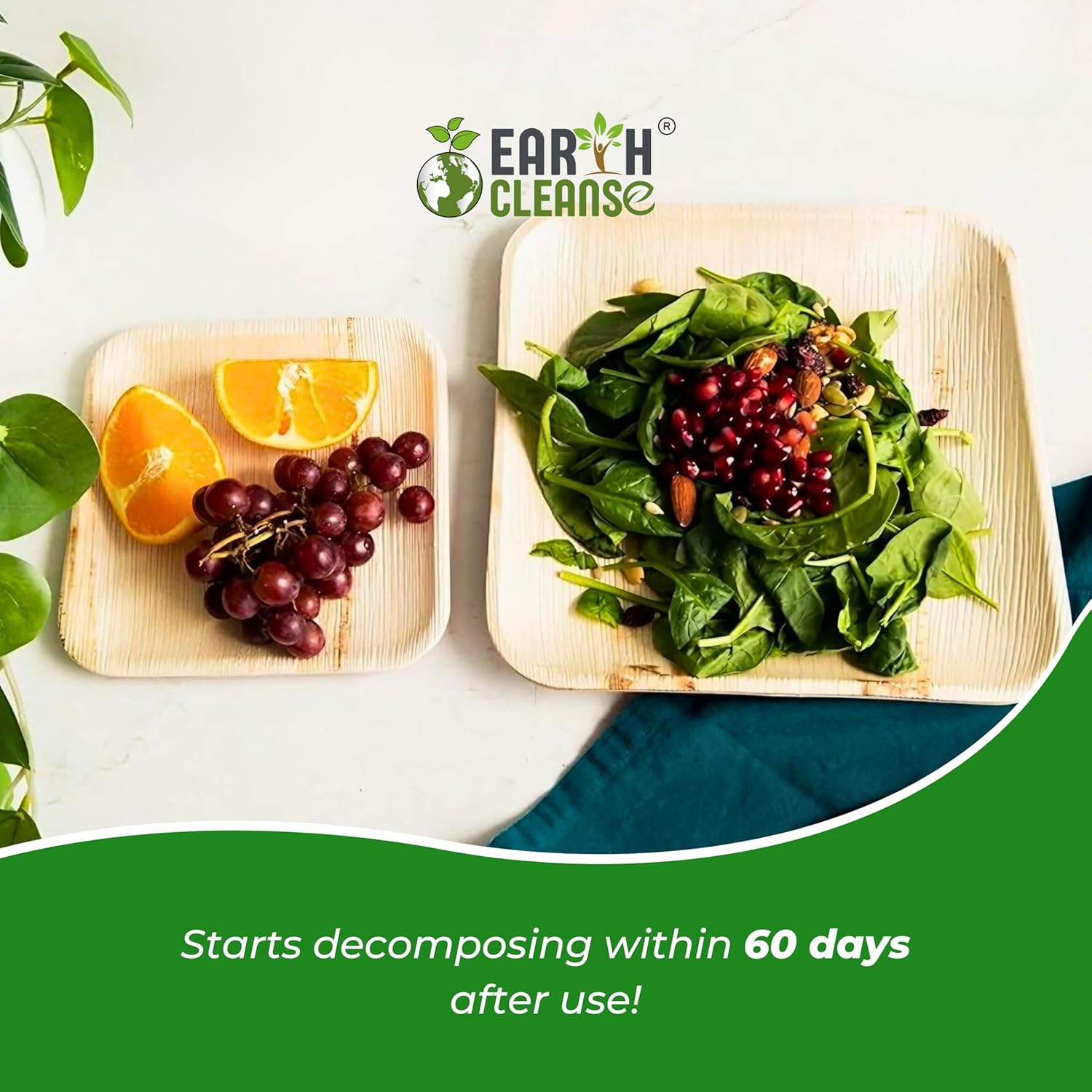 Introducing our Areca Palm Leaf 10-Inch Square Plates, a premium choice for those seeking eco-friendly and sustainable disposable dinnerware. Each pack contains 200 palm plates disposable, crafted to be 100% compostable and biodegradable, much like bamboo plates. This ensures that your gatherings remain environmentally conscious without sacrificing quality or elegance. Our palm leaf plates, comparable to bamboo plates disposable 10, offer a unique blend of durability and aesthetics. Unlike typical disposable plates, our palm plates 10 inch are meticulously crafted from naturally fallen areca palm leaves, providing a rustic charm similar to bamboo disposable plates. These plates are not only visually appealing but also incredibly sturdy, capable of holding a variety of dishes ranging from appetizers to main courses, making them ideal for any event. The square palm plates are designed with functionality in mind. They are microwave and oven safe, allowing for versatile use whether you're warming up leftovers or serving hot entrees. As an alternative to traditional wood disposable plates, these palm leaf plates 8 inch offer a sustainable solution without compromising on performance. Our bamboo dinner plates disposable reflect a commitment to sustainability. By choosing our palm leaf plates, you contribute to reducing environmental impact, as they decompose naturally, unlike conventional plastics. These plates bamboo are perfect for eco-conscious hosts who want to impress their guests with both style and responsibility. Whether you're hosting a wedding, a corporate event, or a casual dinner party, these palm leaf dinner plates provide a seamless dining experience. Available in bulk, our palm leaf plates 100 pack ensures that you have enough for large gatherings, eliminating the need for traditional, less sustainable disposable options. Incorporate our palm leaf compostable plates into your next event and experience the perfect combination of sustainability and sophistication. These biodegradable bamboo plates offer peace of mind, knowing that your choice supports environmental conservation while providing guests with an exceptional dining experience. Opt for our compostable palm plates and make a meaningful difference today. Disclaimer: USDA Certified Biobased Product Label granted by the United States Department of Agriculture’s BioPreferred Program in 2024 for Earth Cleanse Palm Leaf Plates and Bowls. Certification remains valid under program guidelines unless product formulation changes.